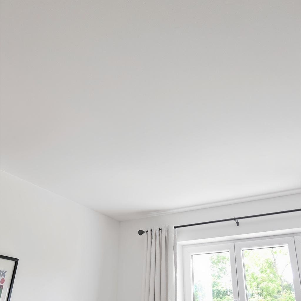 Сатиновое полотно - это ровная гладкая матовая ПВХ пленка без рельефа. Не блестит. Аналогично матовому полотну, только не имеет шагрени (шероховатости). Визуально разницу между матовым и сатиновым полотнами можно увидеть только при очень близком рассмотрении поверхности. Около 5% всех монтажей - сатиновое полотно.